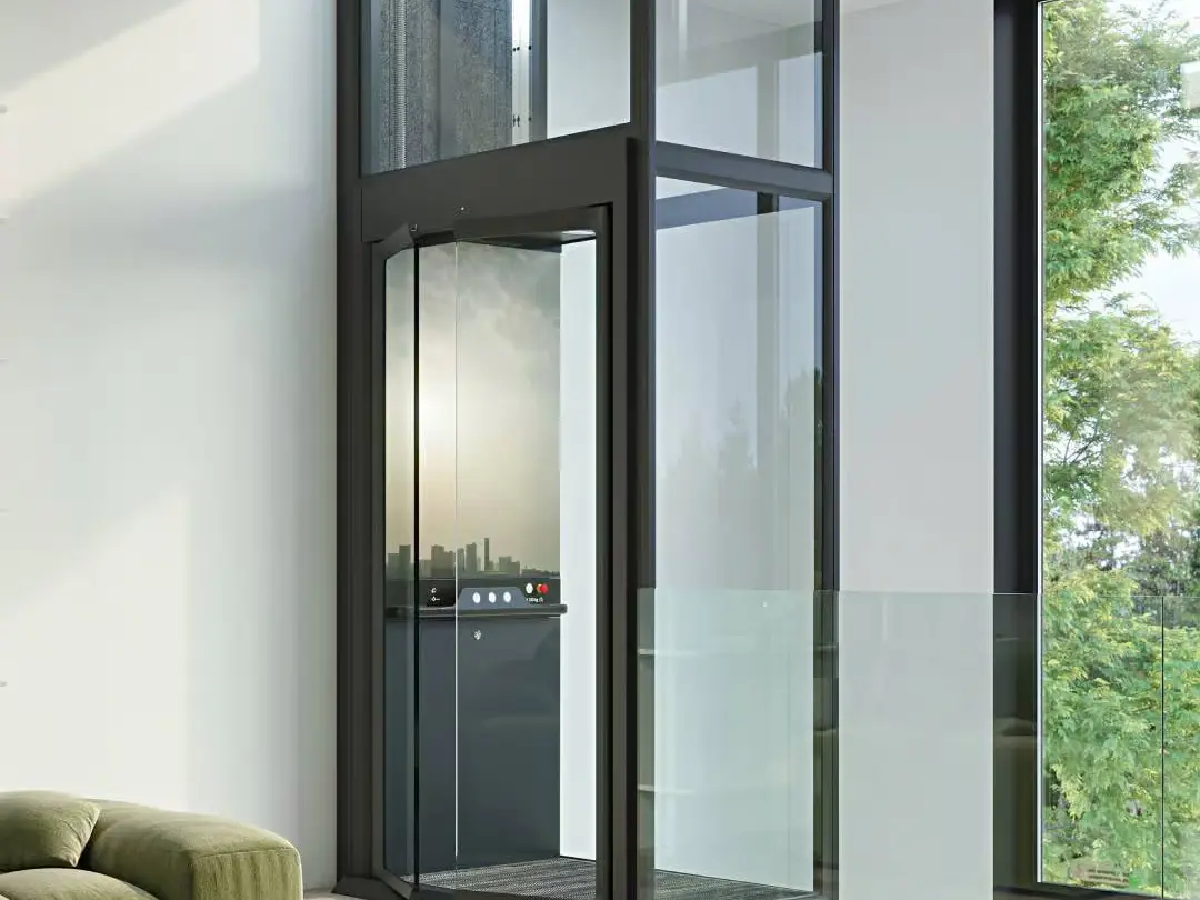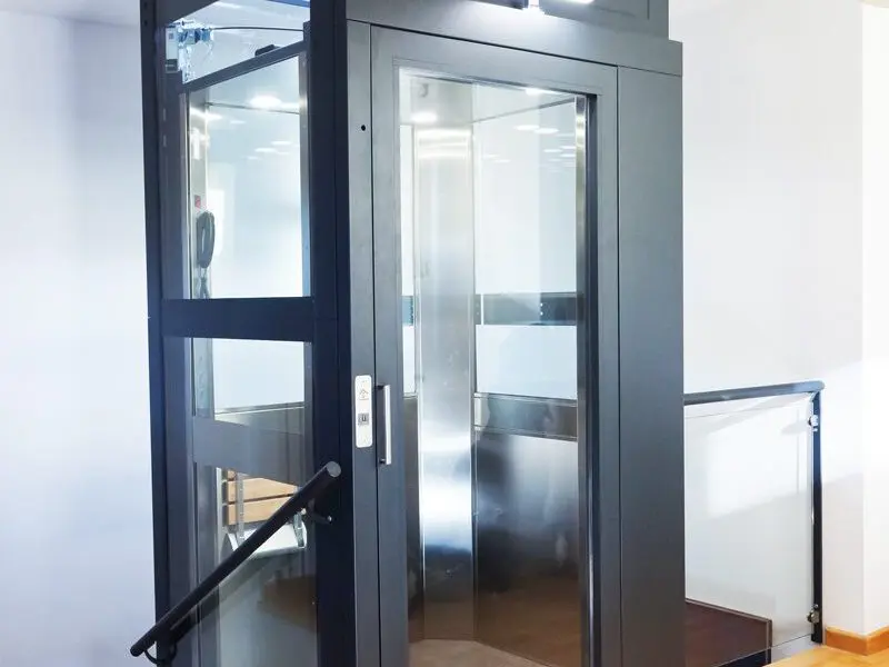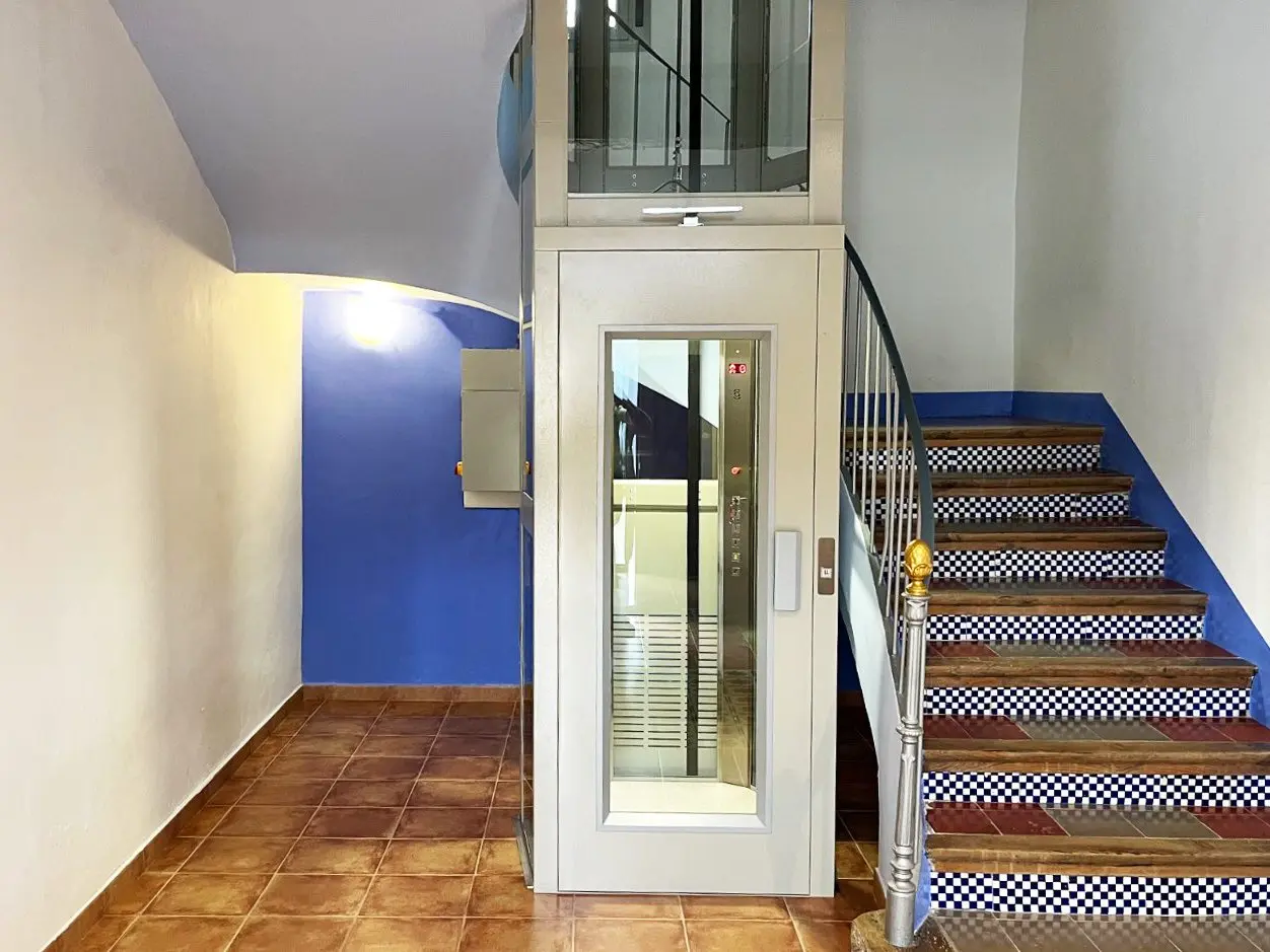 Ascensor doméstico compacto, sin foso ni sala de máquinas, ideal para viviendas y espacios reducidos.